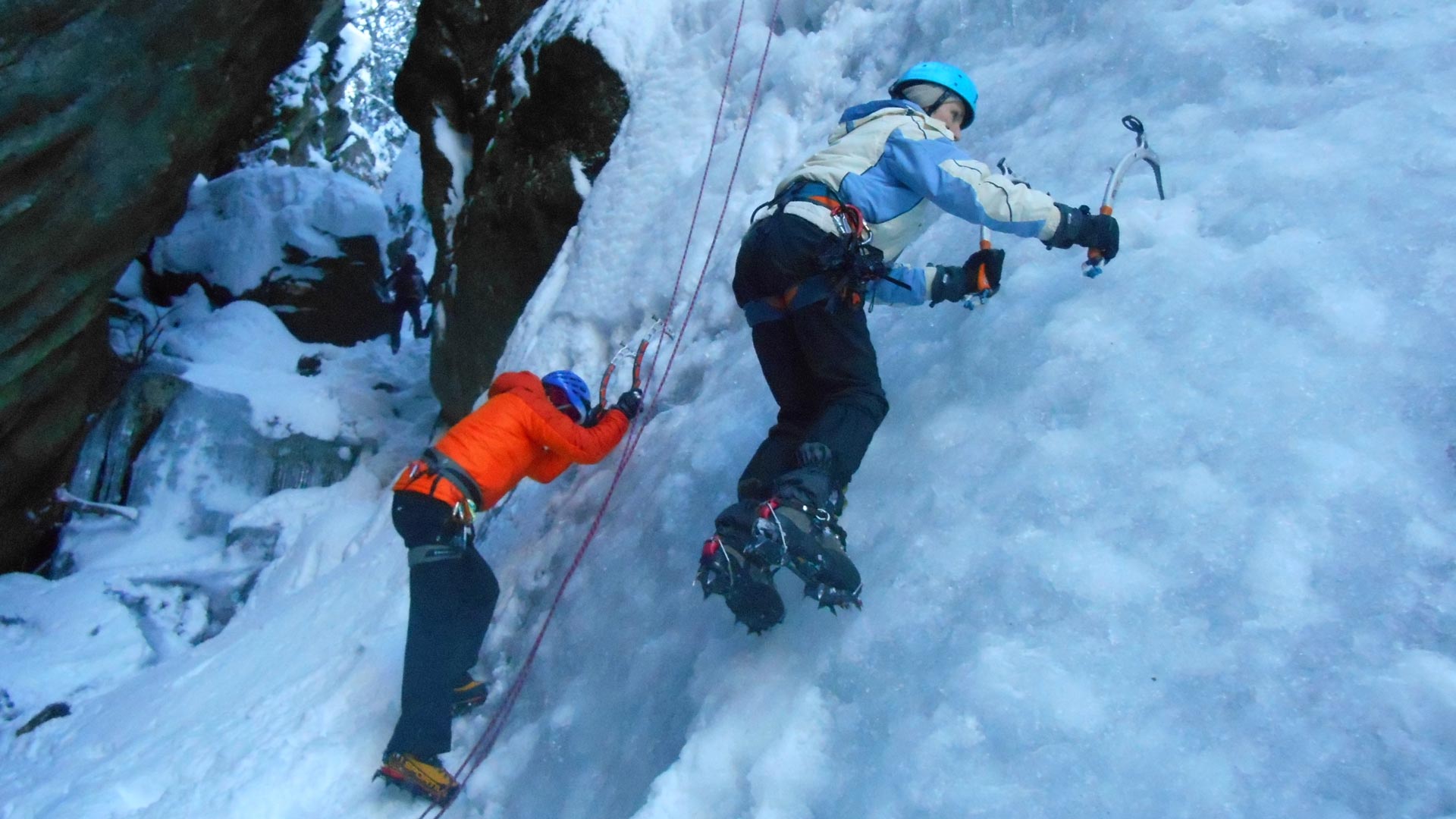 A ice climbing course with an expert Alpine Guide, to improve your technique and discover the most beautiful and rewarding icefalls in Piedmont and Aosta Valley.